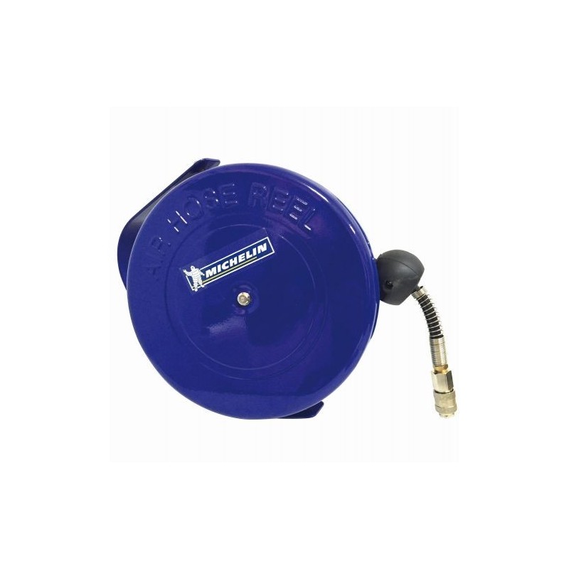 Enrollador automatico de manguera de aire. Presion maxima 12 Bar. Recogida de manguera automatica. Incluye soporte para pared. Material de metal. Exterior 12mm – interior 8mm. 10mt de manguera